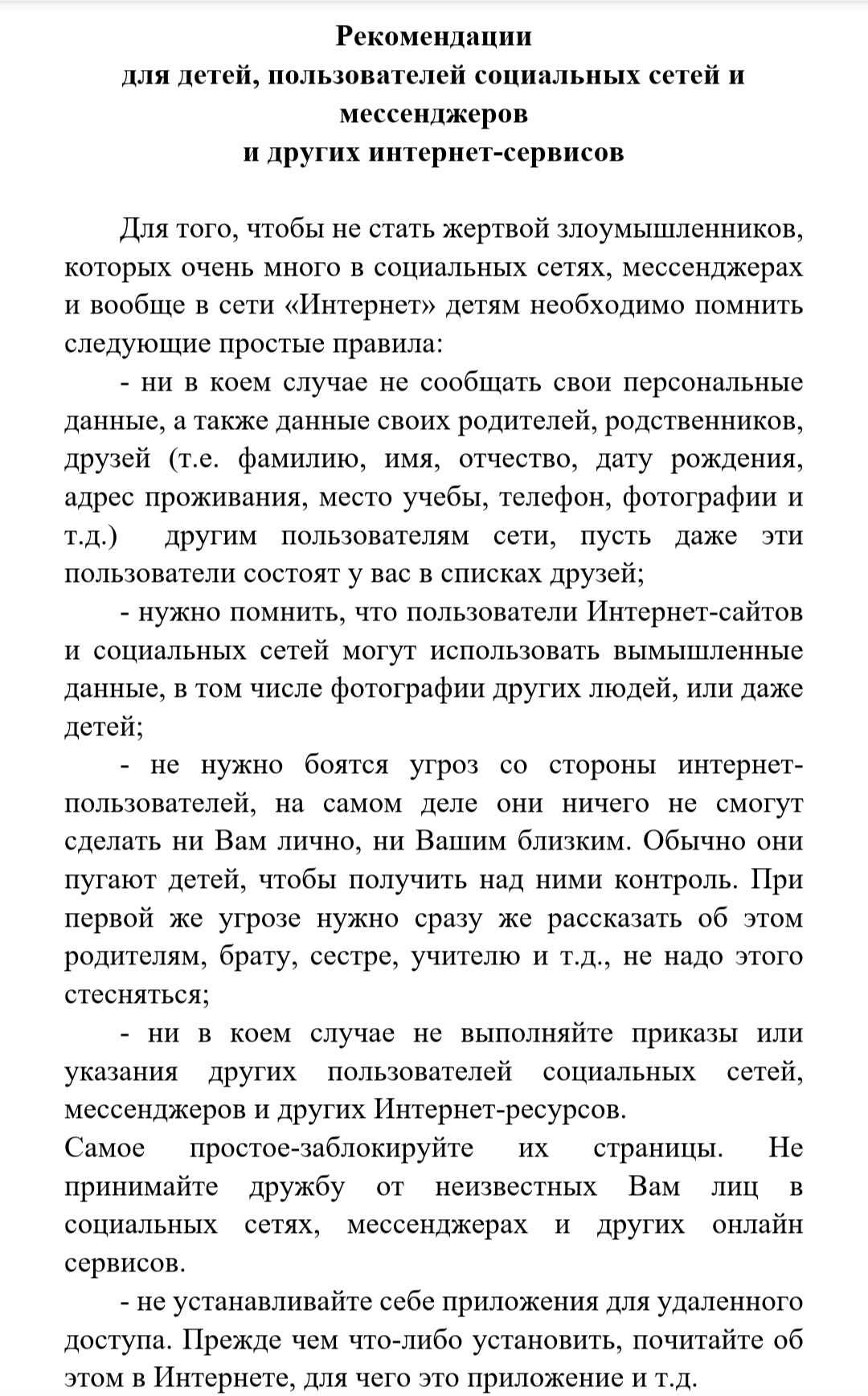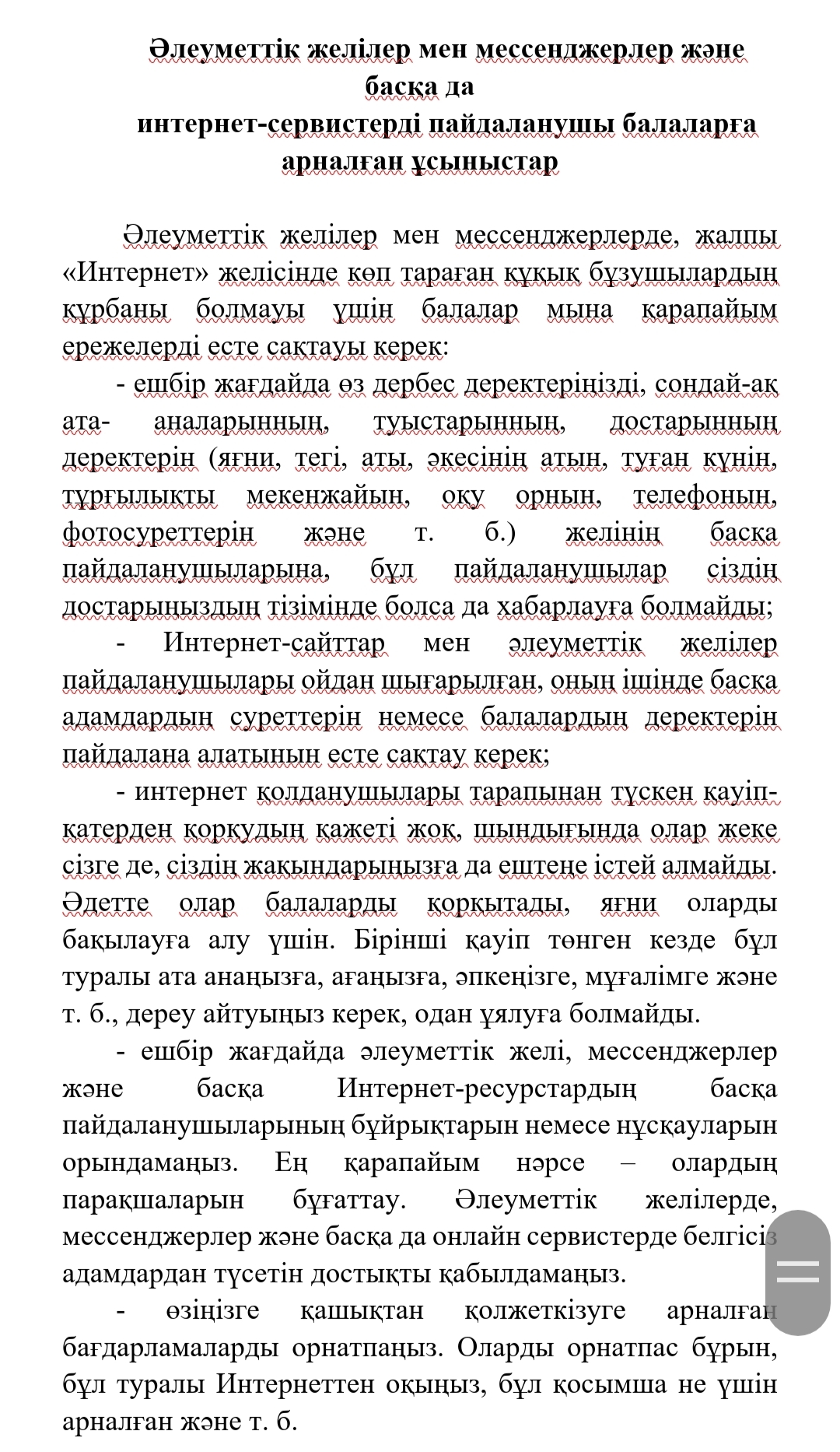 Әлеуметтік желілер мен мессенджерлер және басқа да интернет сервистерді пайдаланушы балаларға арналған ұсыныстар